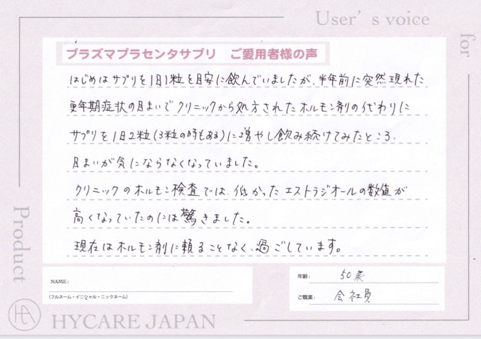 昨年12月に病院で閉経を診断されたお客様の体験談です。