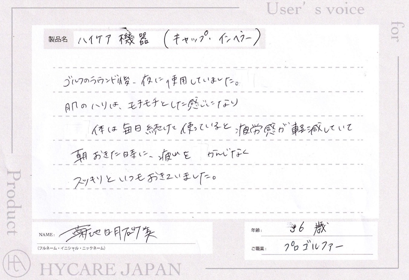 プロゴルファーの菊地明砂美様は、どのようなケアをされているのですか?