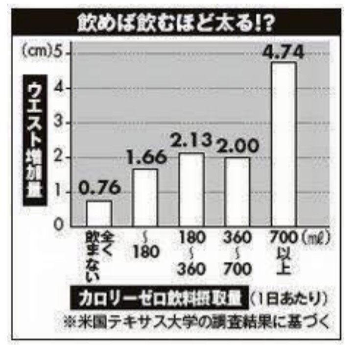 カロリーゼロ飲料の摂取量とウエストの増加比